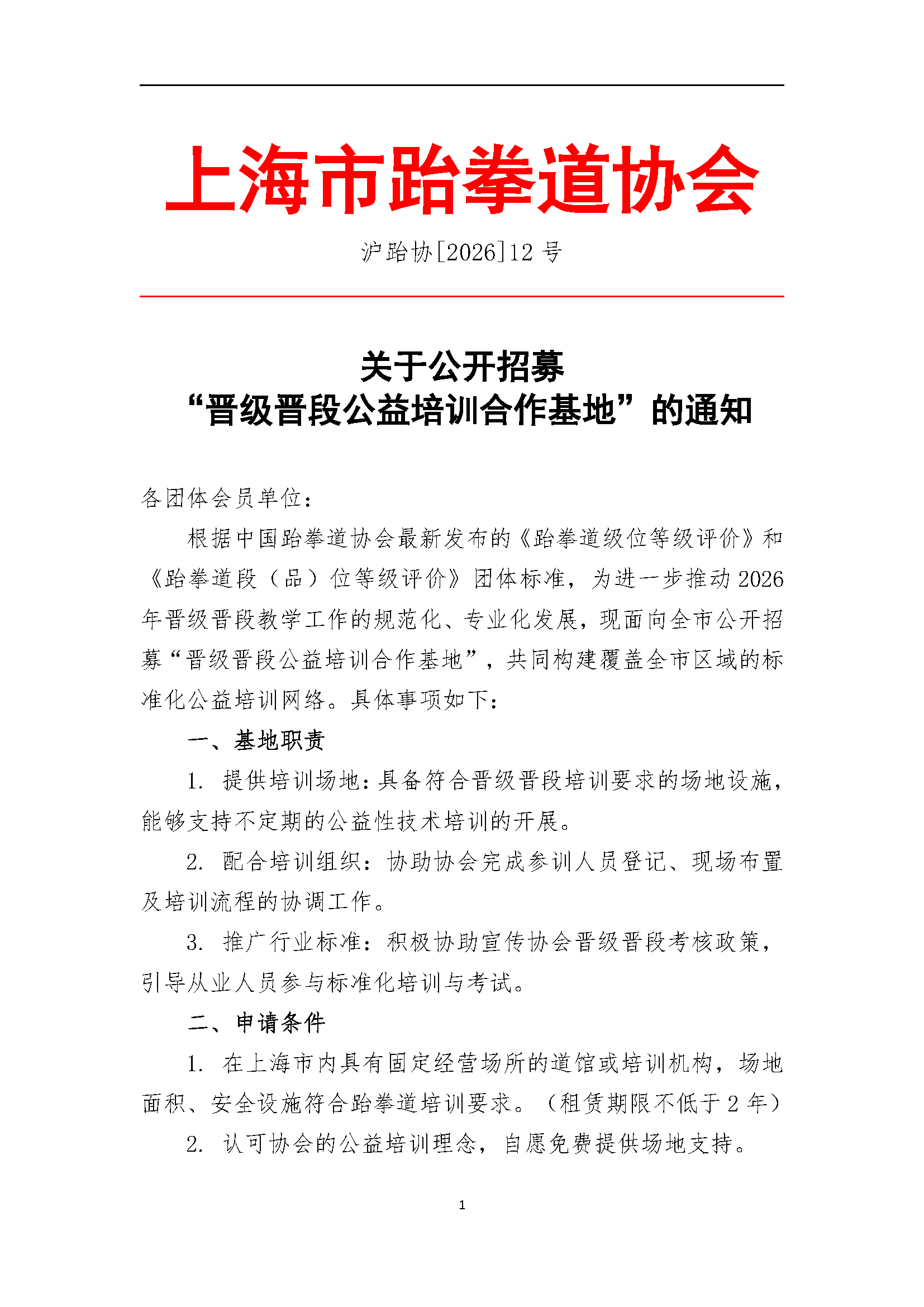 关于公开招募“晋级晋段公益培训合作基地”的通知