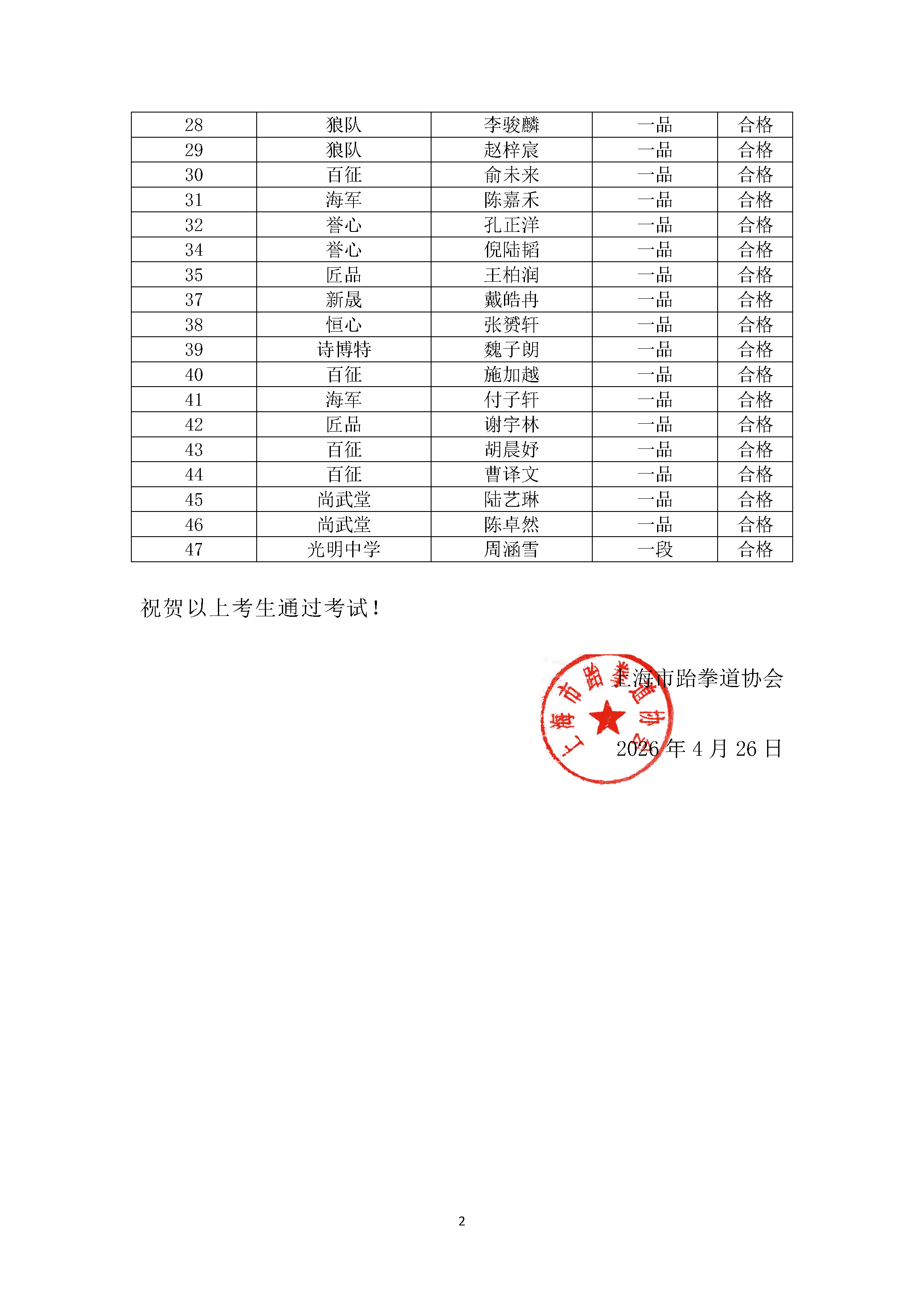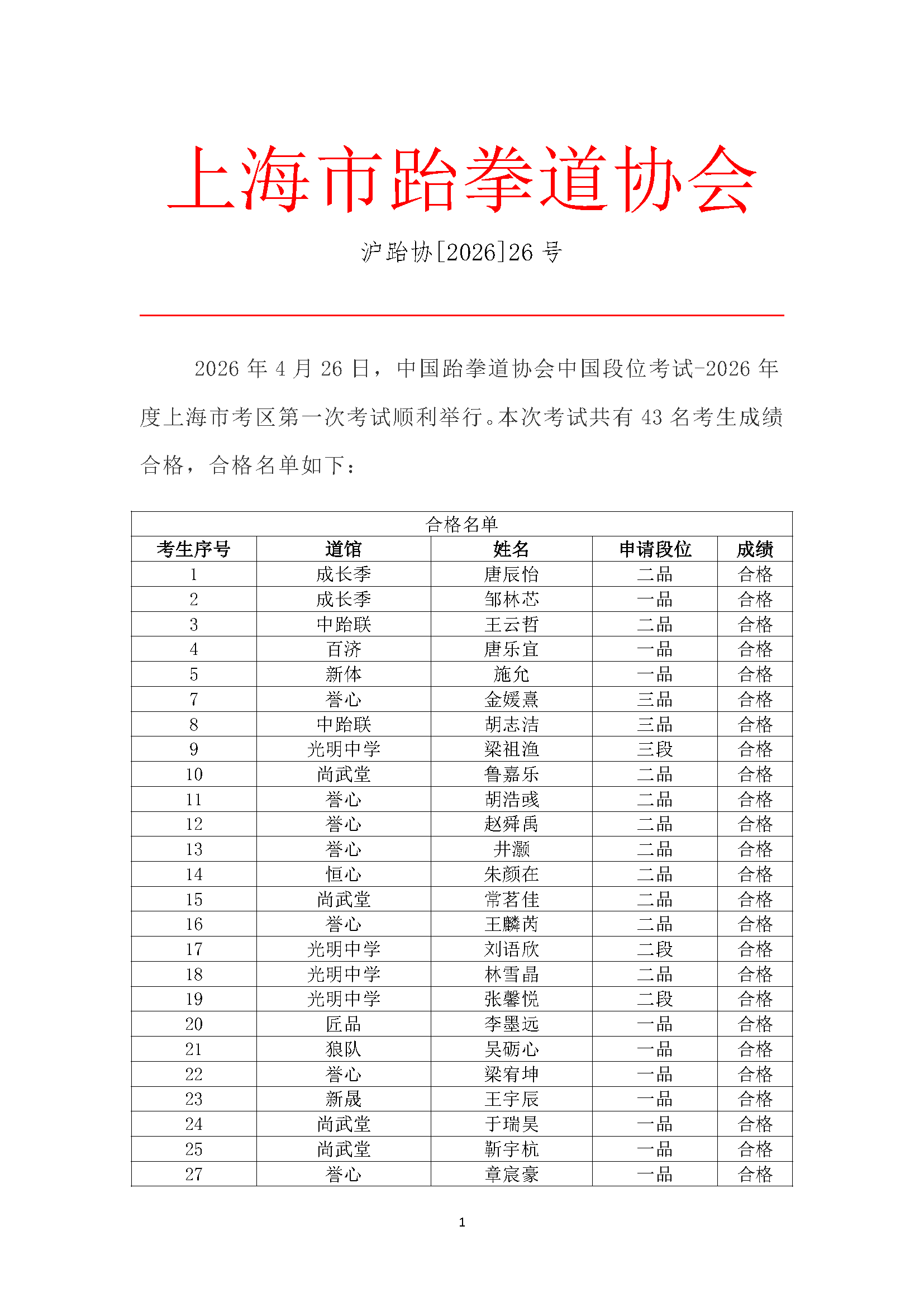 关于公布2026年第一次中国段位考试合格名单的通知